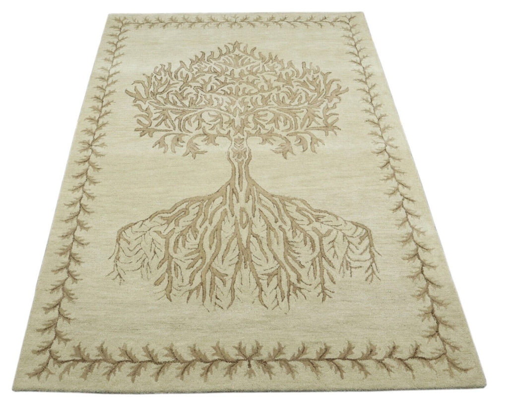 Бежов килим, 100% вълна, 160 x 230 см, ръчно изработен, ръчно тъфтиран, T937