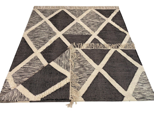 Kilim Teppich 100% Wolle Durry Beige Schwarz Kelim Orientteppich Handgewebt