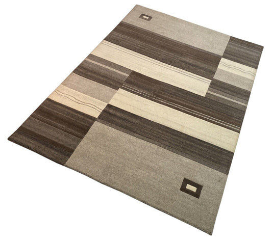 Gabbeh Teppich Dunkel Beige 100% Wolle 140x200 cm Orientteppich Handgewebt Lr688
