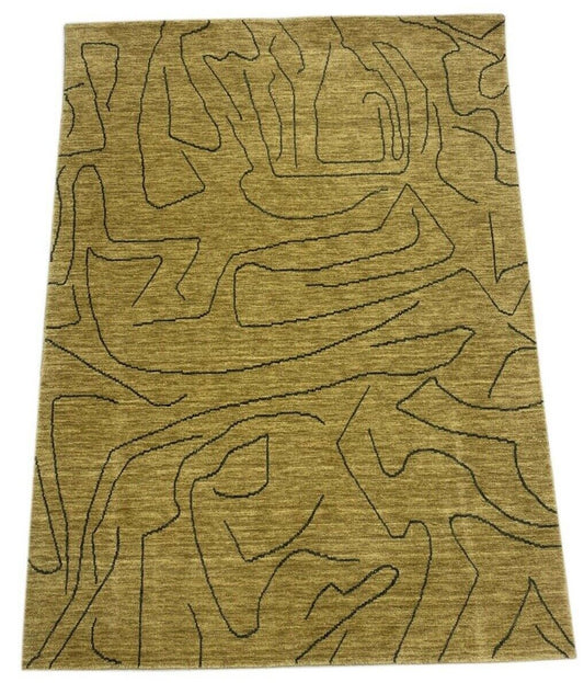 Gabbeh Teppich Gold Beige 100% Wolle 142x195 cm Handgewebt Lori WR65
