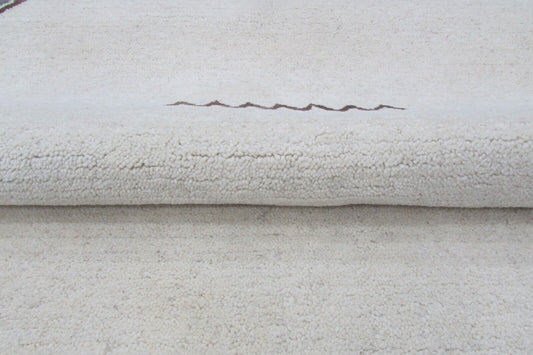 Grau Teppich 100% Wolle Beige Gabbeh lori Handgewebt 124x187 cm Naturwolle S105