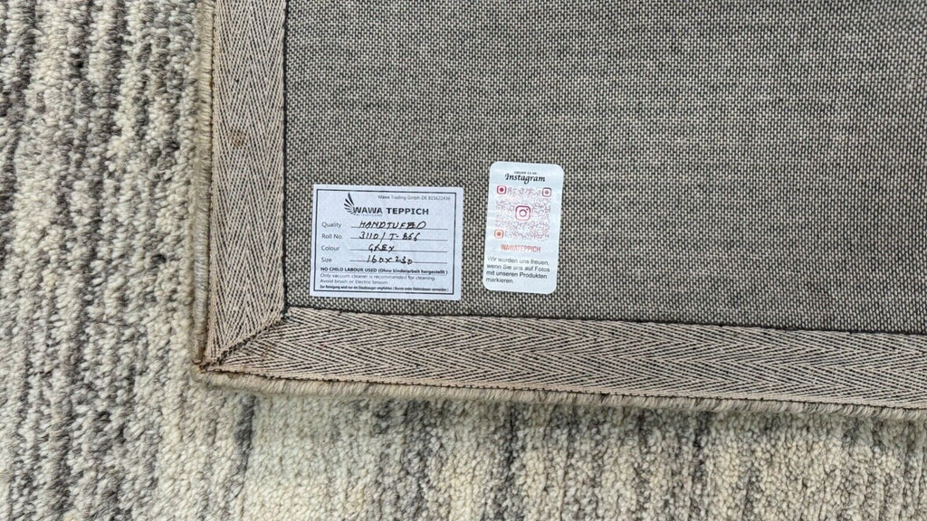 Grau Teppich 100% Wolle Béžová 160X230 cm Handarbeit Handgetuftet T866