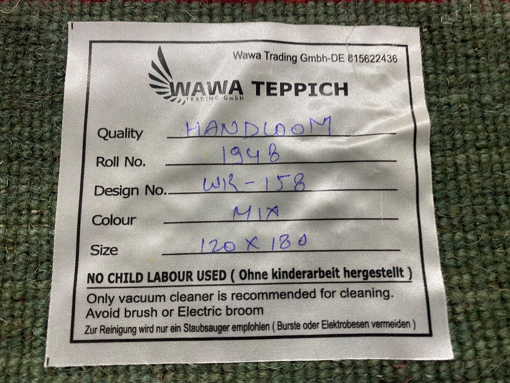 Grün Rot Teppich 100% Wolle Gabbeh 120x180 cm Handgewebt Home Deko WR156