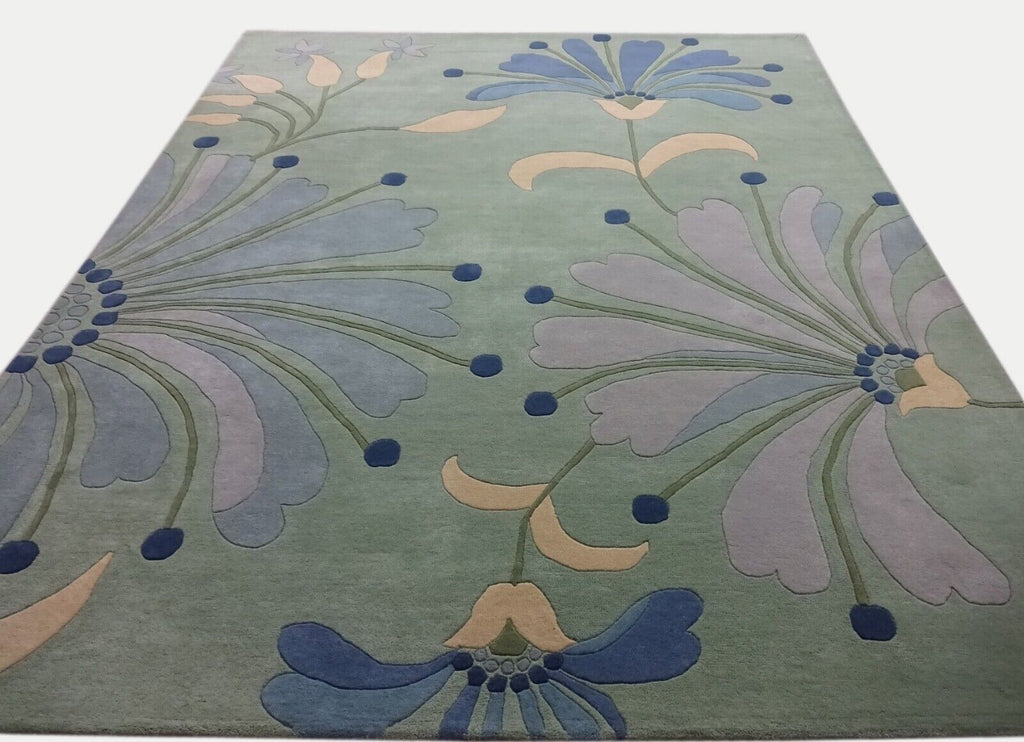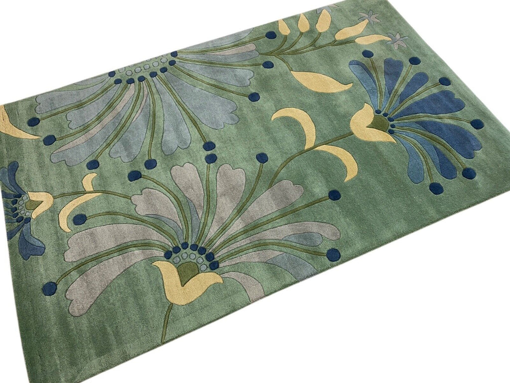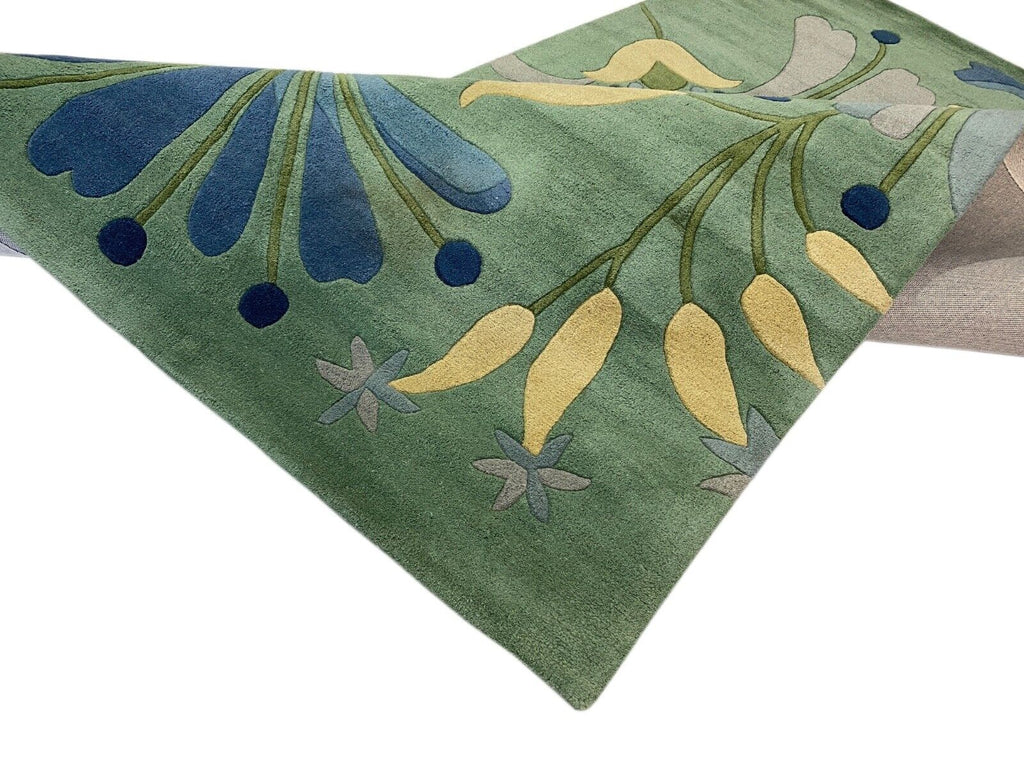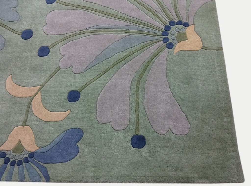 Mátově zelený koberec, ručně vyrobený orientální koberec s motivem listů, 100% vlna, 245x300 cm, MA135