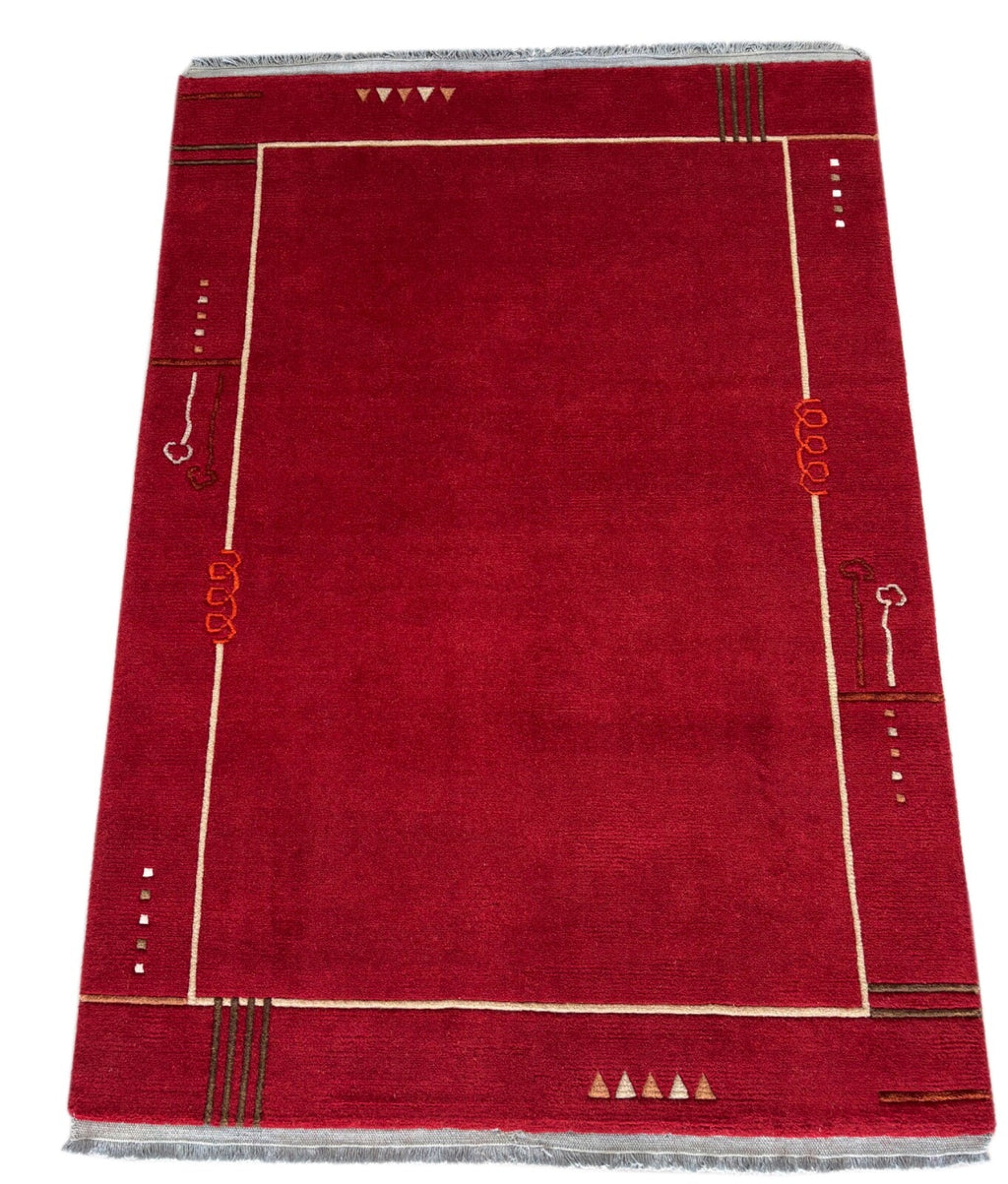 Rot Teppich Indo Nepál Handgeknüpft 100% Wolle 160X230 cm Orientteppich R19