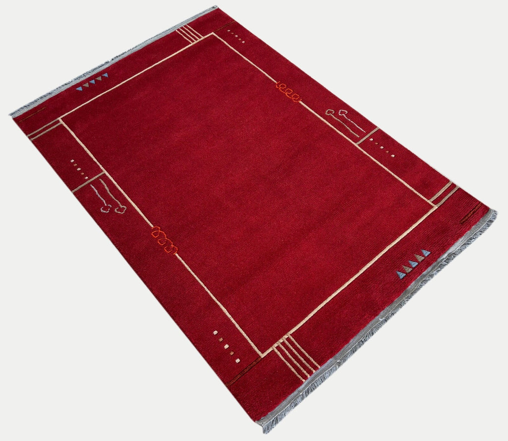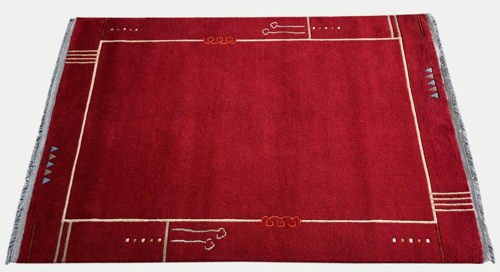 Rot Teppich Indo Nepál Handgeknüpft 100% Wolle 161x242 cm Orientteppich PR55