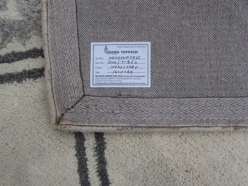 Teppich 100% Wolle Grau Béžová 160X230 cm Handarbeit Handgetuftet T860