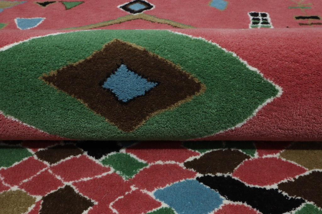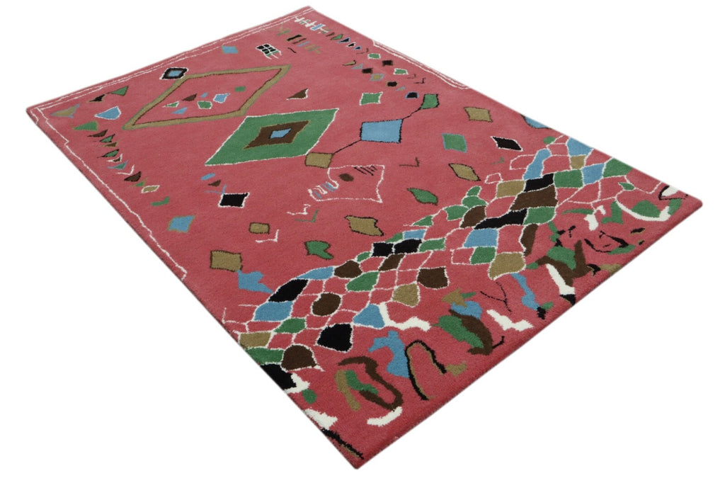 Vlněný koberec 120x180 Růžový vícebarevný diamantový marocký vzor Ručně všívaný koberec HT304