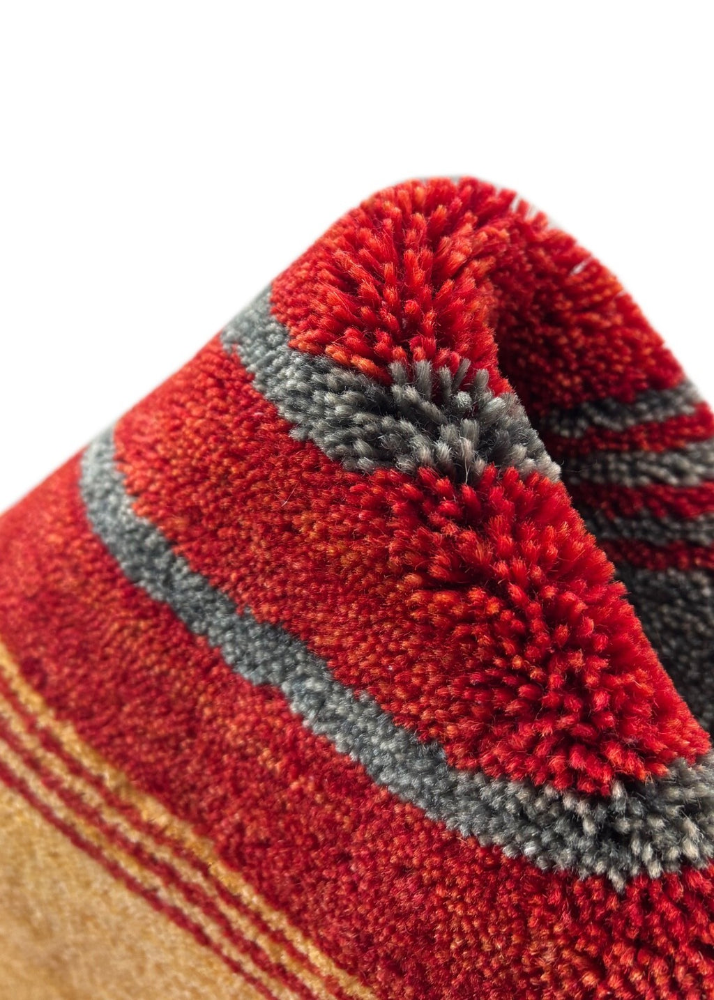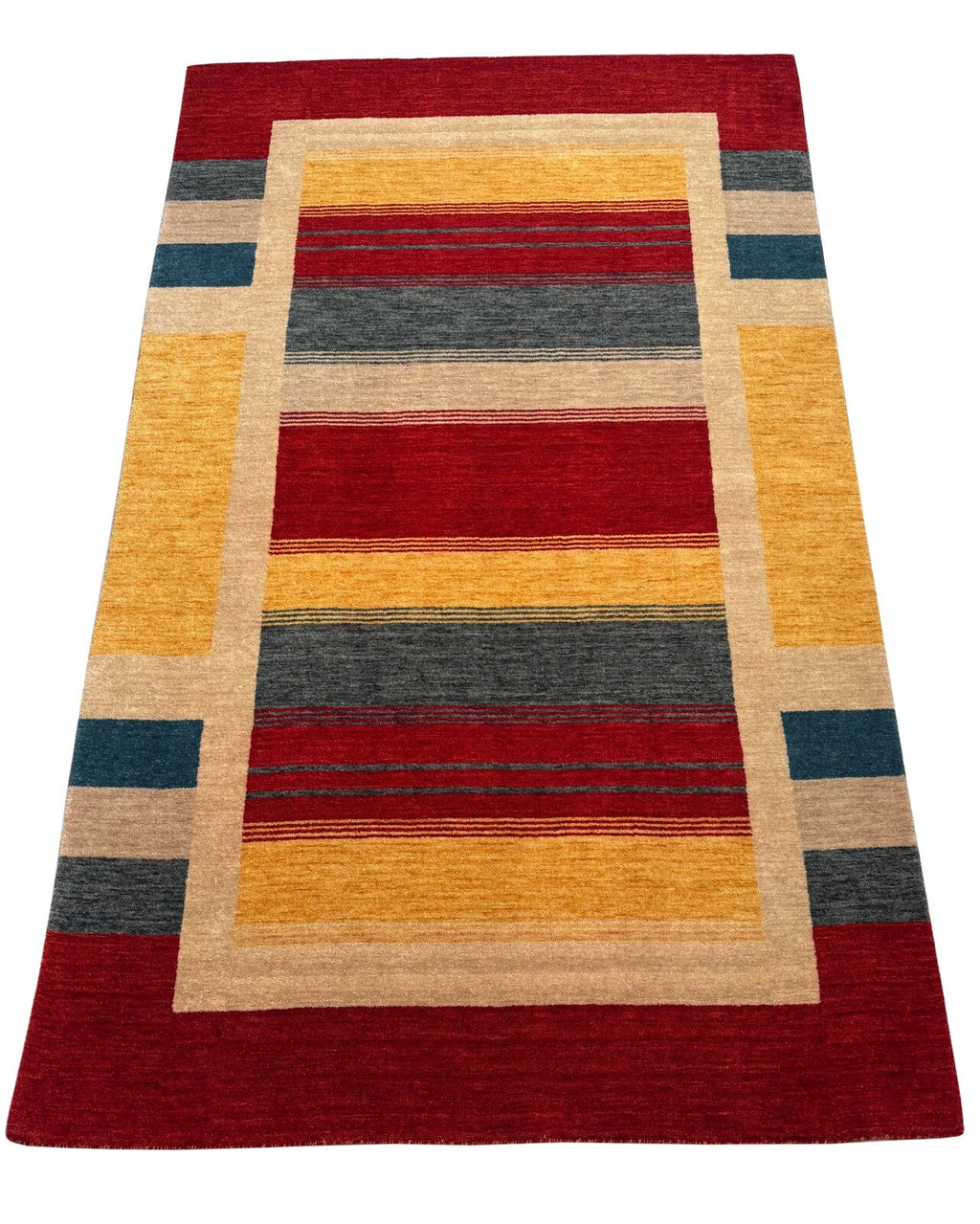 Bringen Sie Farbe und Stil in Ihr Zuhause s diesem handgewebten Teppich aus 100% reiner Wolle. Der Teppich kombiniert warme Töne Wie Rot, Senfgelb, Beige and Dunkelblau in einem jasný, moderní Streifen-Design. Er passt perfekt in Wohn- oder Schlafzimmer und setzt ein besonderes Highlight auf jedem Boden.
