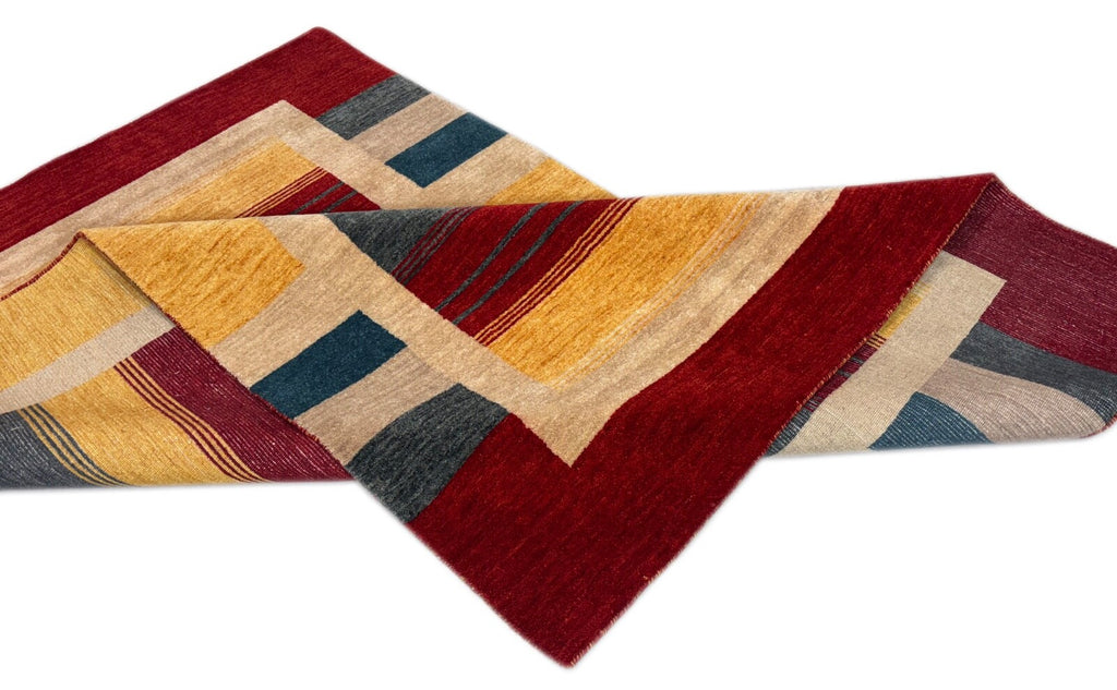 Bunt Wohnzimmer Gabbeh Teppich 100% Wolle 160x240 cm zlatooranžová Handgewebt sa1
