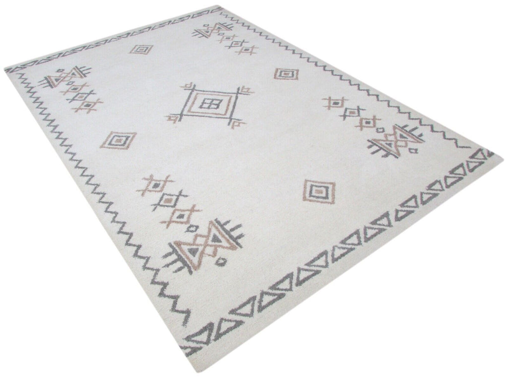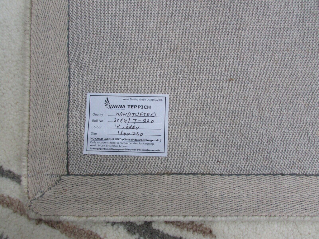Béžová Grau Teppich 100% Wolle 160X230 cm Handarbeit Handgetuftet T820