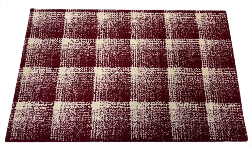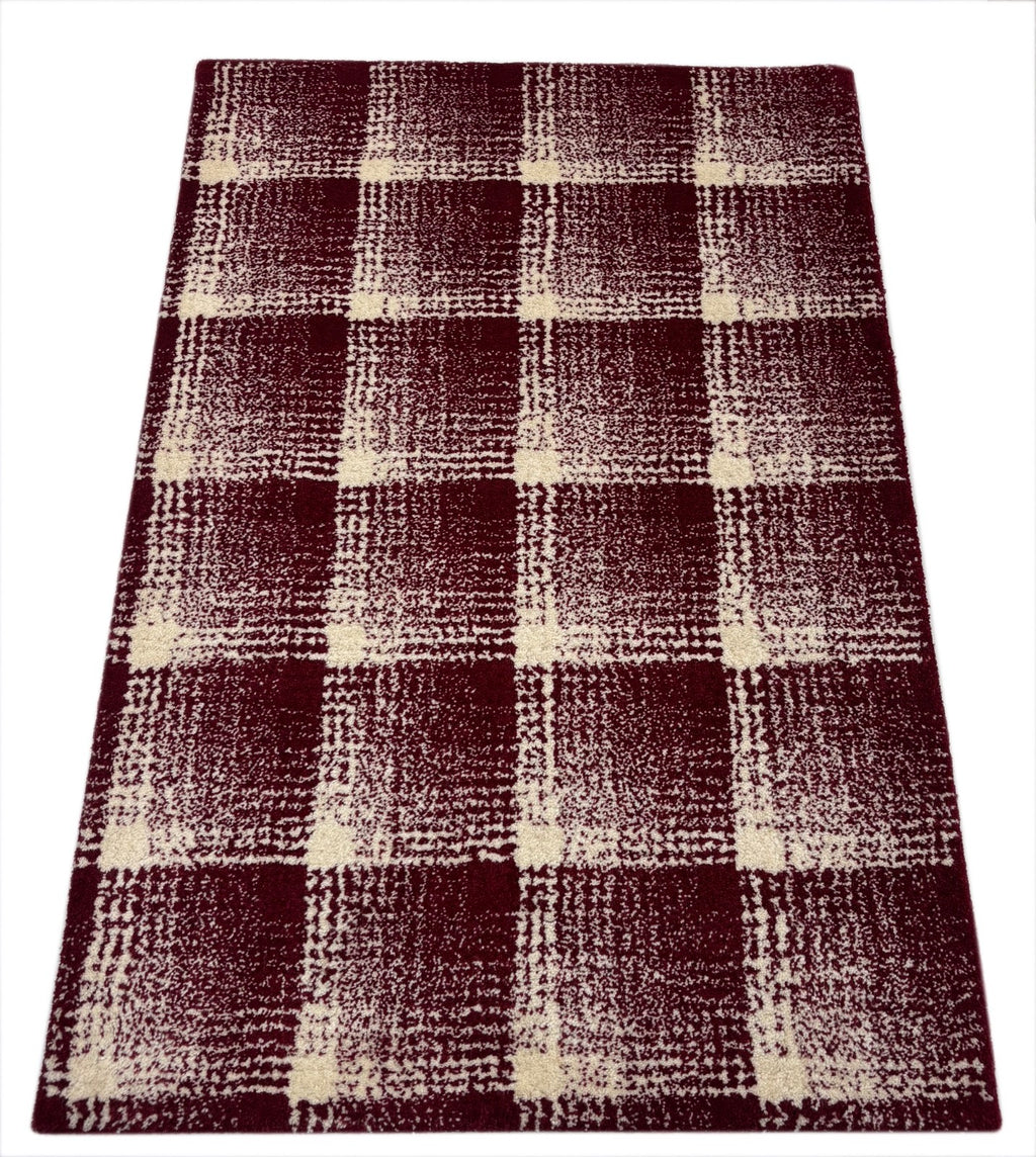 Ručně všívaný vlněný koberec 60x90cm Červenobílý Moderní Geometrický Vzor R100