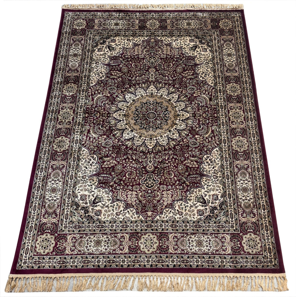 Verleihen Sie Ihrem Zuhause einen Hauch von Luxus mit edlen Orientteppich im Kashmir-Design , gefertigt aus hochwertiger Viskose mit edlem Seidenglanz . Květinový vzor Medaillon s fein ausgearbeiteten Details sorgt für eine stilvolle, klassische Atmosphäre in the red Raum.