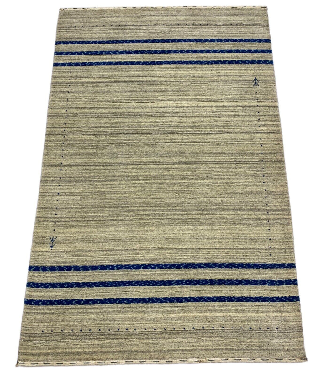 Gabbeh Teppich 100% Wolle Hell Grau Blau loom lori Handgewebt 120x180 cm S138