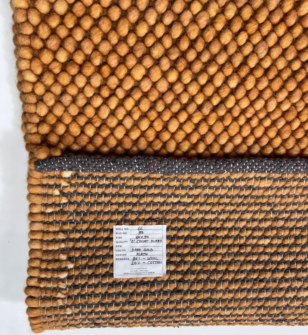 Handgefertigter Kilim Dhurry Teppich 60x90 cm – Goldbraun, 100% Wolle, Made in India