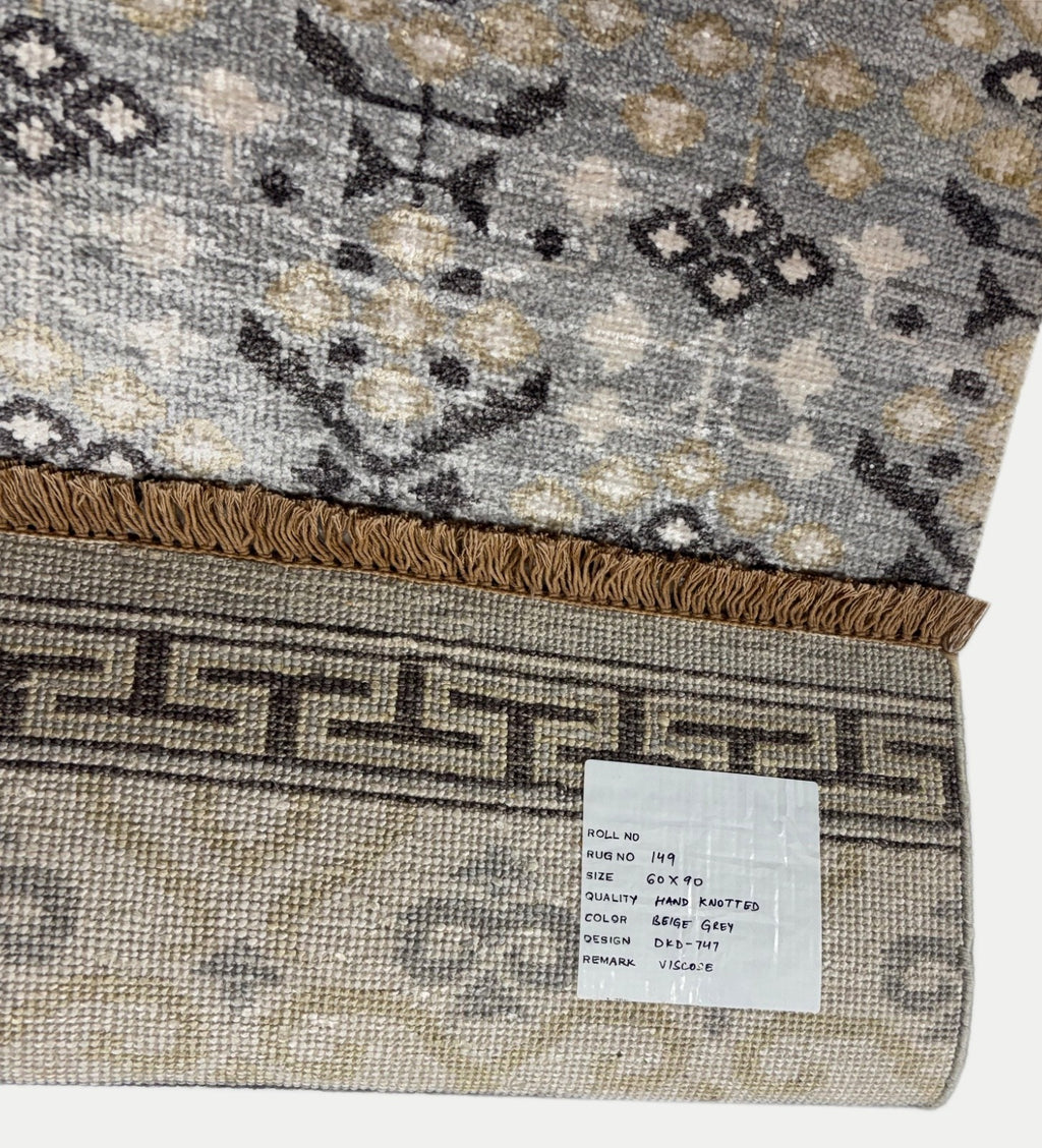 Handgeknüpfter Wollteppich 60x90 cm Kurzflor Modern Grau Beige Teppich D747