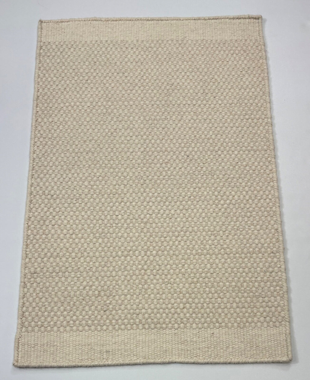 Handgefertigter Kilim Dhurry Teppich 60x90 cm – Naturweiß, 100% Wolle, Made in India