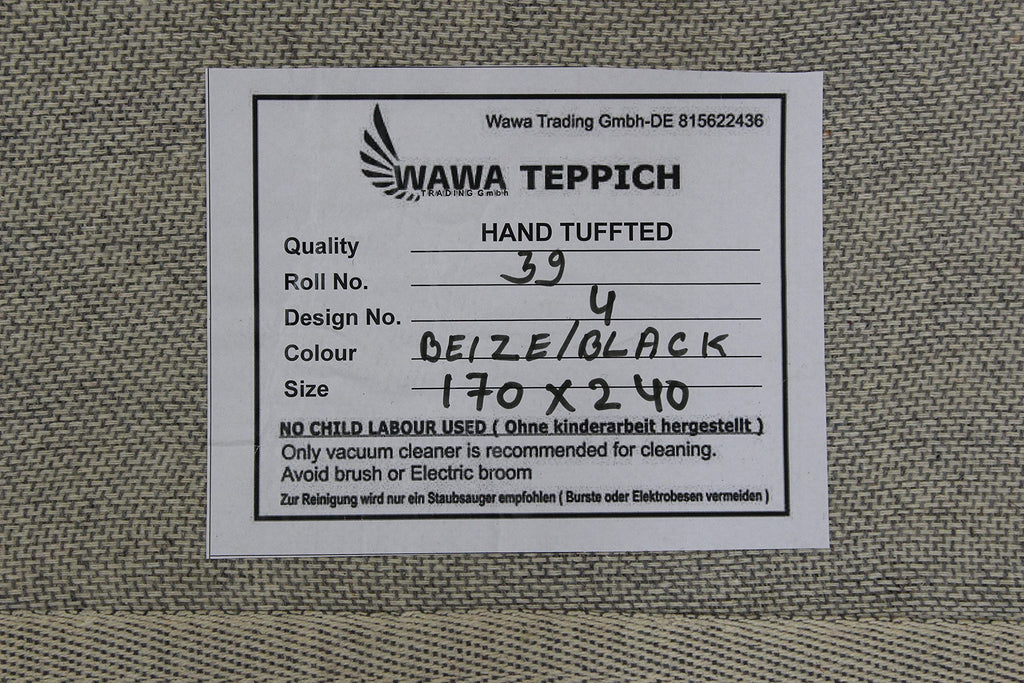 Schwarz Beige 100% Wolle Teppich Handarbeit (ME-4, 170 x 240 cm)