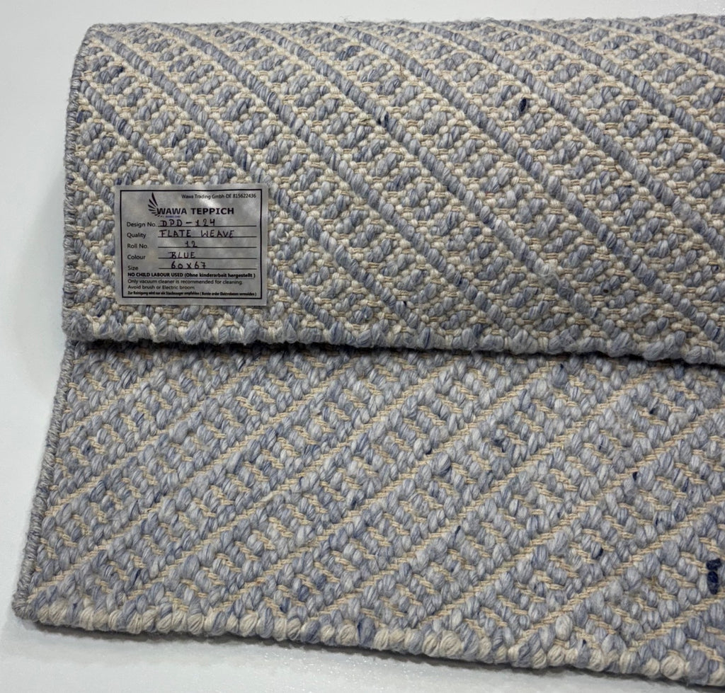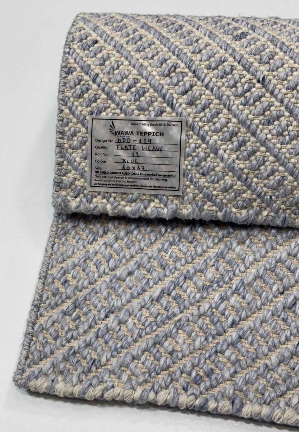 Teppich Flachgewebe – Handgefertigt aus Wolle & Baumwolle 60x67 cm Beige Grau
