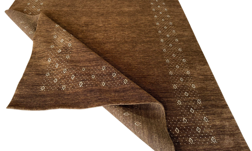 Braun Gabbeh Teppich Uni 100% Wolle Orientteppich Handgewebt Loom Brücke AN3