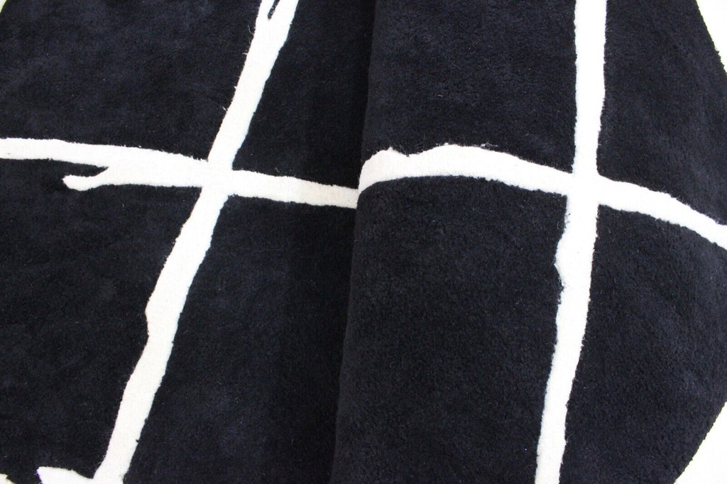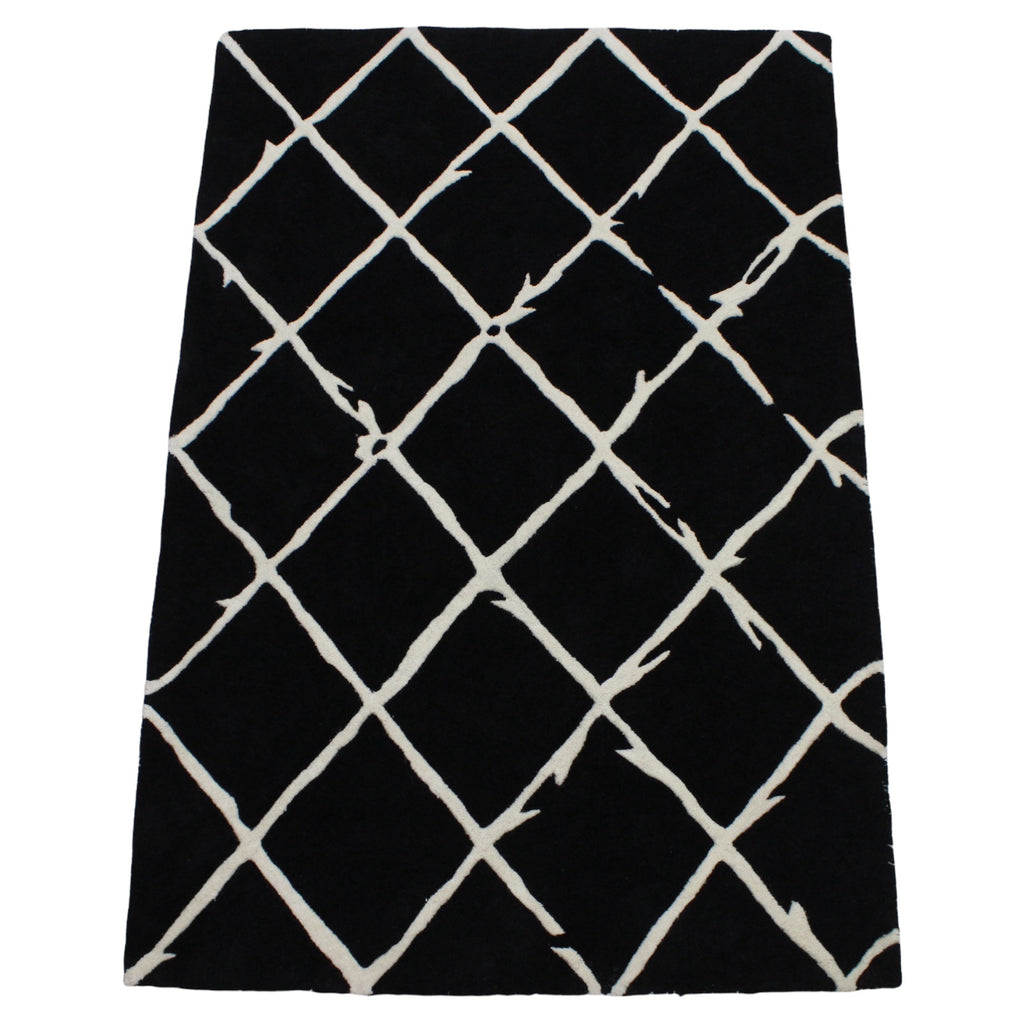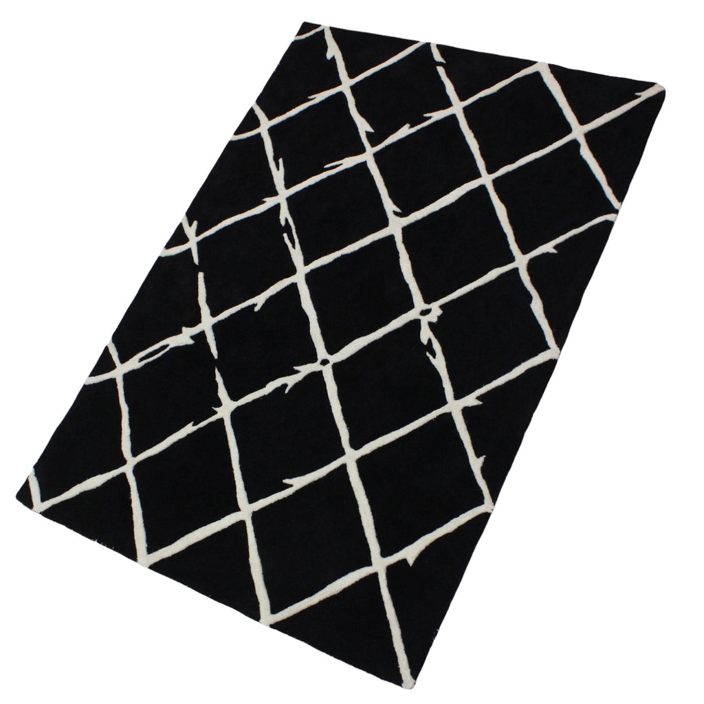 Schwarz Beige 100% Wolle Teppich 120X180 CM Handarbeit Handgetuftet ME1