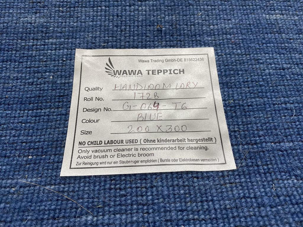Gabbeh Teppich Blau 100% Wolle 200x300 cm Handgewebt Orientteppich G64T6