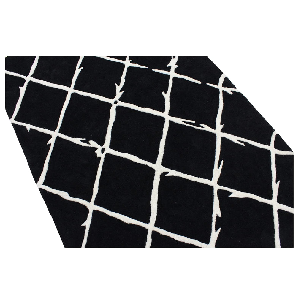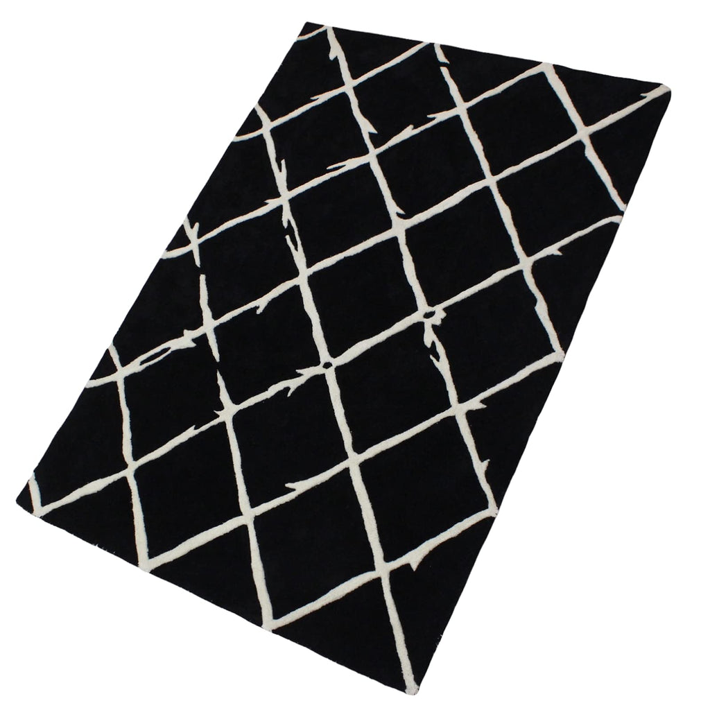 Schwarz Beige 100% Wolle Teppich Handarbeit (ME-1, 120 x 180 cm)