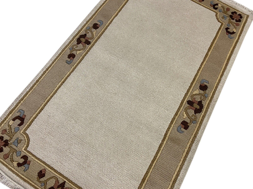 Nepal Rug Hand-knotted Beige 100% Wool Oriental Rug 90x155 cm N-106
