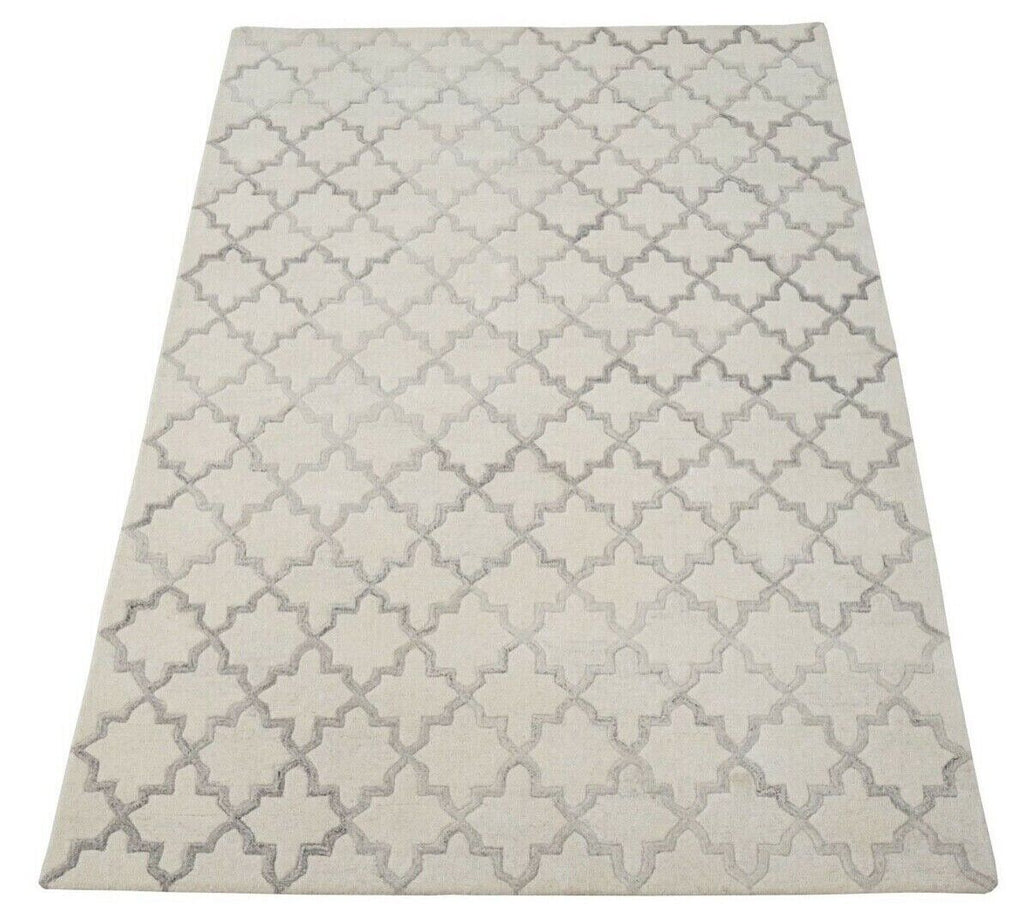 Beige Grau 160X230 cm Teppich 100% Wolle Orientteppich Handgetuftet HT406