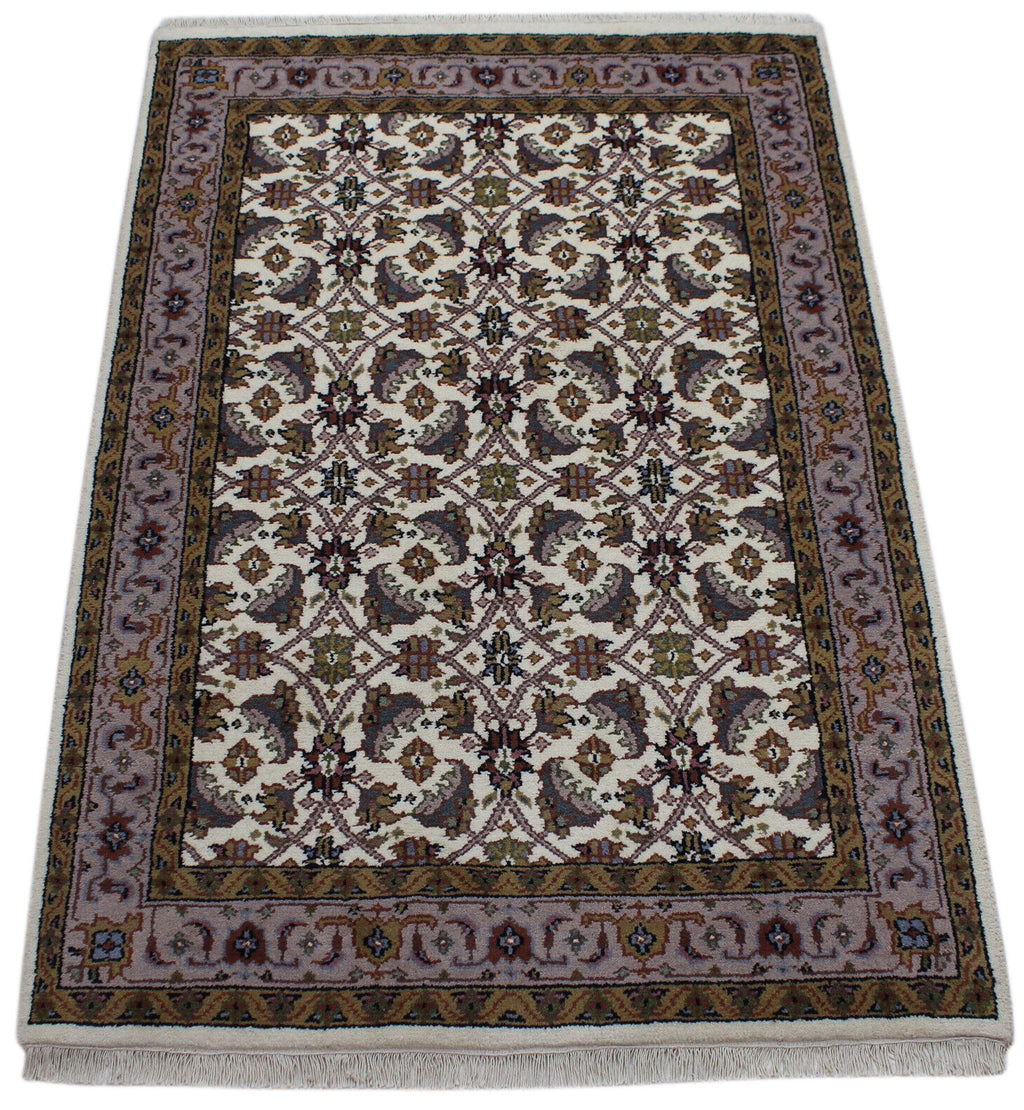 Beige Teppich Wolle Handgeknüpft Orientteppich 100% Schurwolle 120X180 cm D9