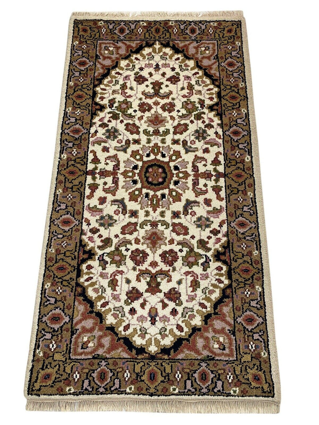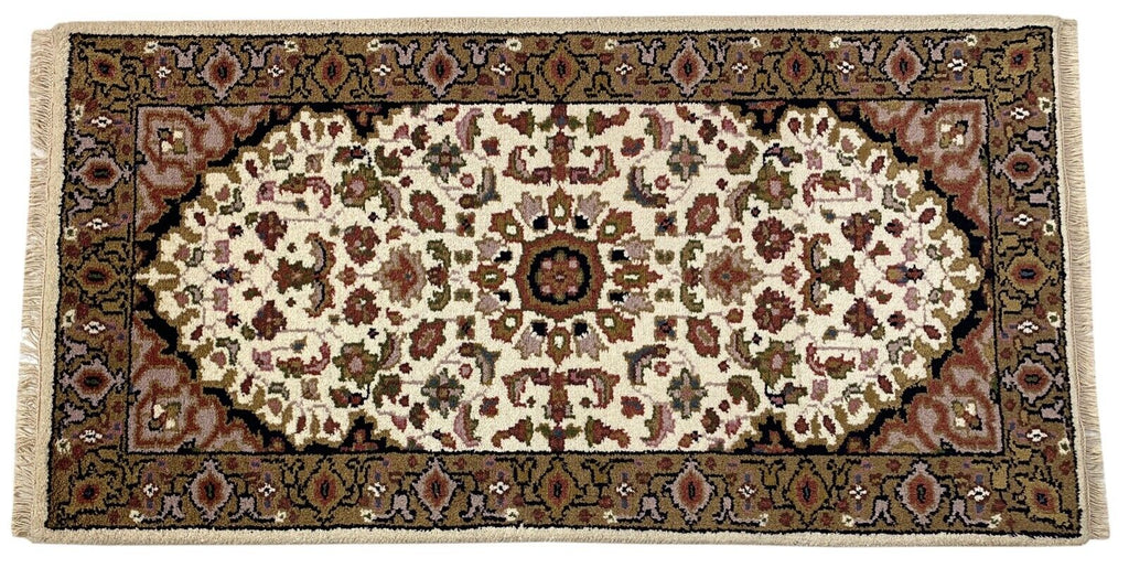 Beige Teppich Wolle Handgeknüpft Orientteppich 100% Schurwolle 70X140 cm D8