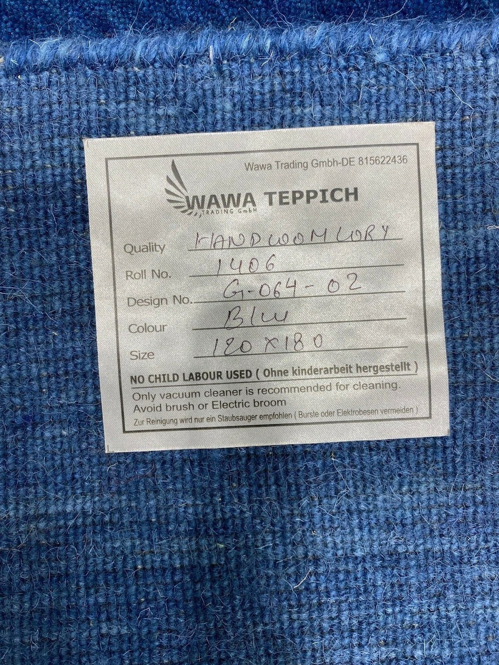 Blau Teppich 100% Wolle Gabbeh 120x180 cm Handgewebt einfarbig gefärbt G64