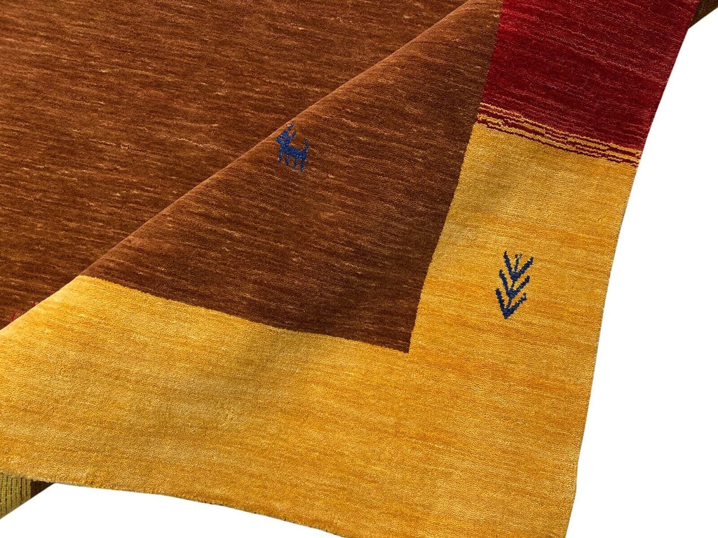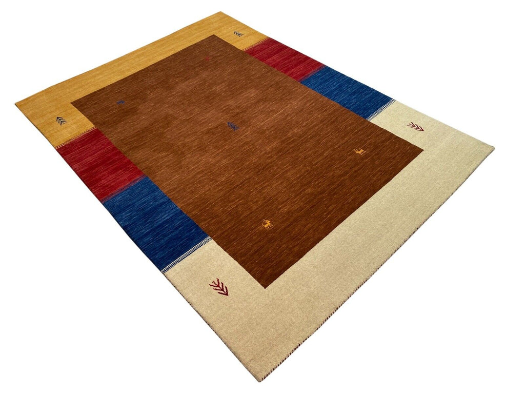 Gabbeh Teppich 100% Wolle 170x240 cm Braun Beige Rot Handgewebt Orientteppich
