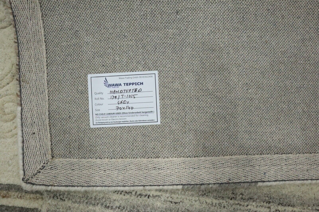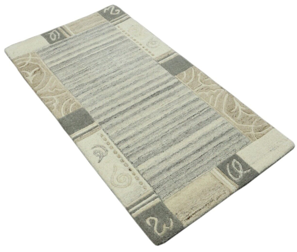 Gabbeh Teppich 100% Wolle 70X140 cm Handarbeit Grau Beige Handgetuftet T1015