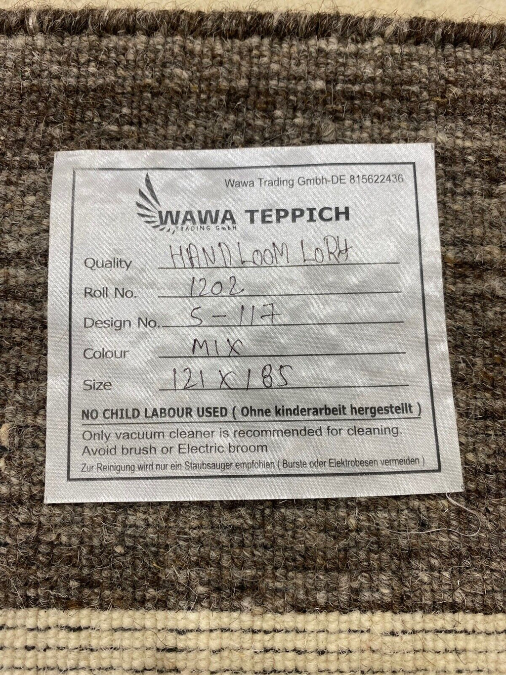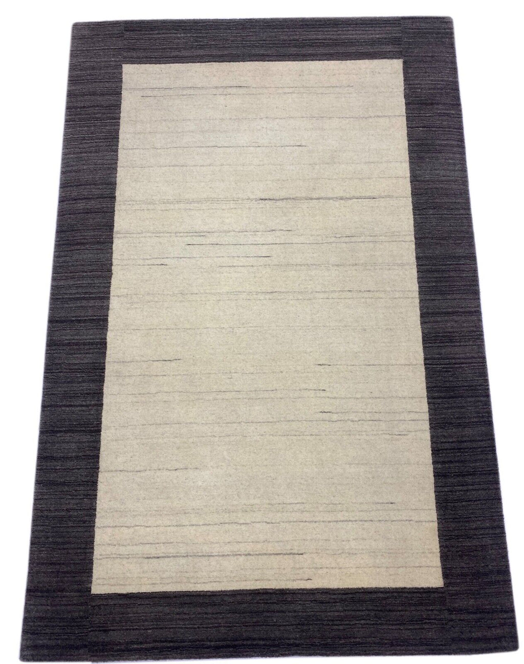 Gabbeh Teppich 100% Wolle Beige Schwarz Handgewebt 120x185 cm Naturwolle S117