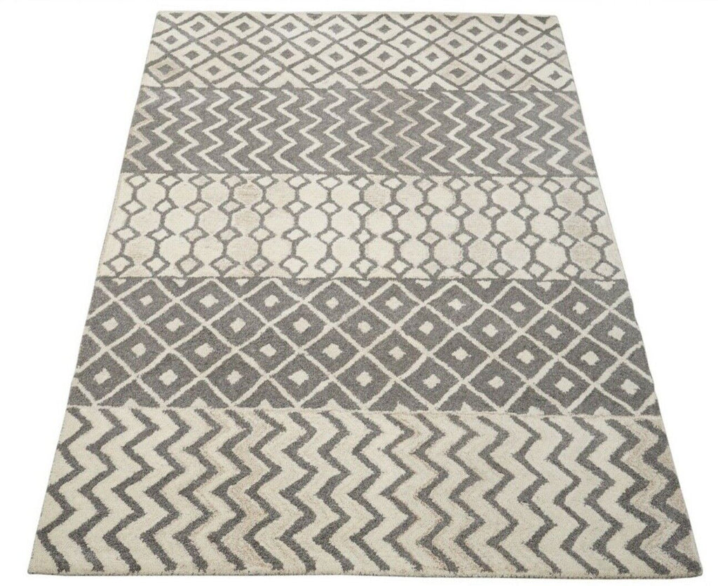 Grau Beige 160X230 cm Teppich 100% Wolle Orientteppich Handgetuftet HT180