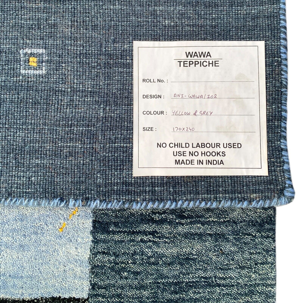 Grau Gabbeh Teppich 100% Wolle 170x240 cm Gold Blau Handgewebt Orientteppich 102