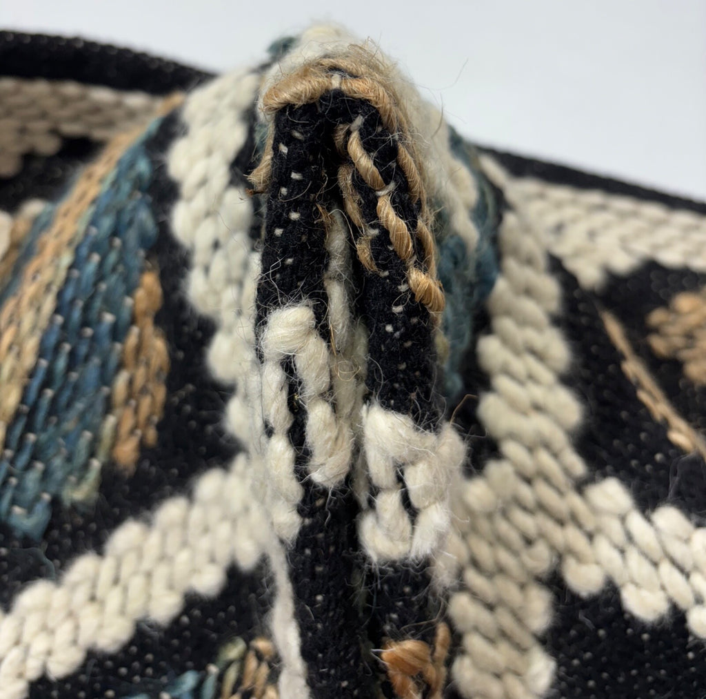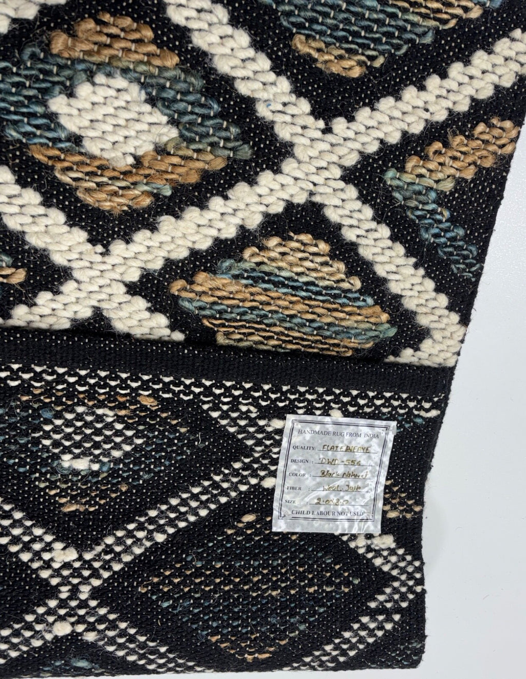 - Design: Traditioneller Kilim Dhurry-Stil, handgewebt mit einem geometrischen Muster in den Farben Schwarz und Elfenbein – zeitlos und stilvoll.