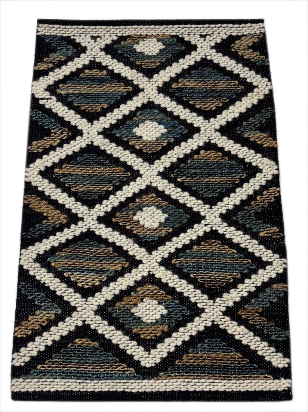 Handgefertigter Kilim Dhurry Teppich 60x90 cm – Schwarz, 100% Wolle, Made in India