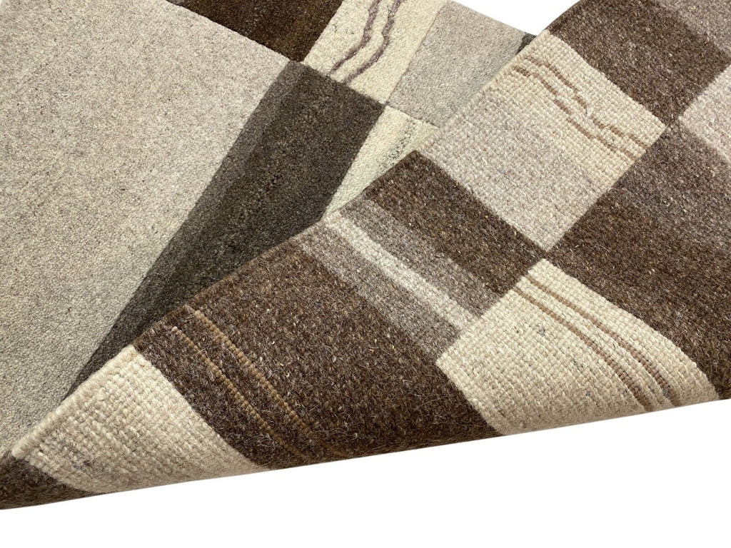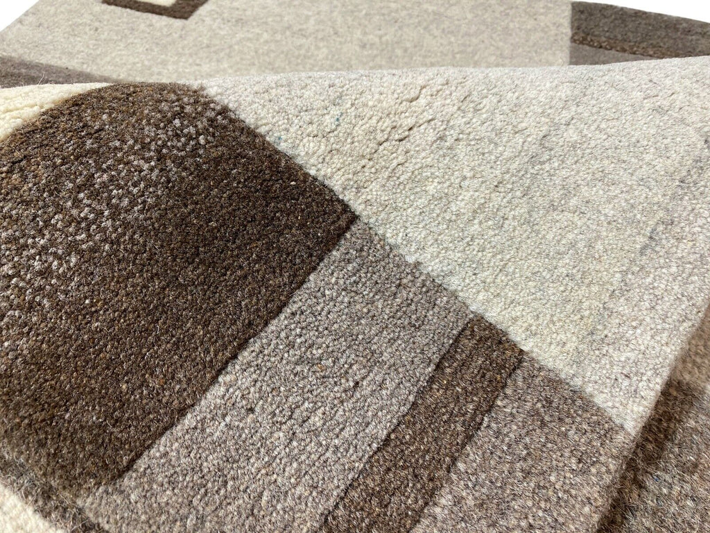 Indo Nepal Teppich Handgeknüpft Grau Beige Braun 70X140 cm Wolle Orientteppich