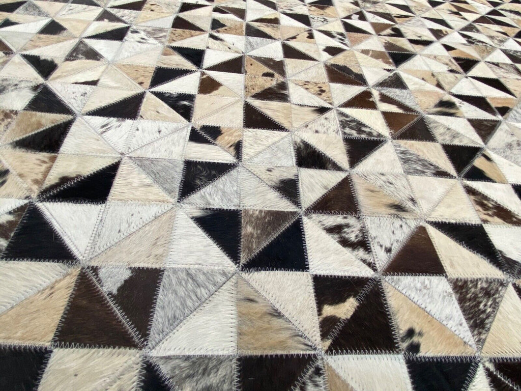 Leder Teppich 160x230 cm 100% Kuhfell ivory Braun Beige Echtleder Patchwork L4