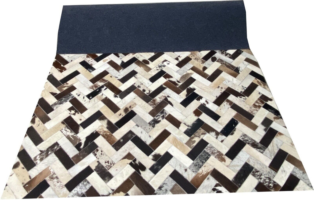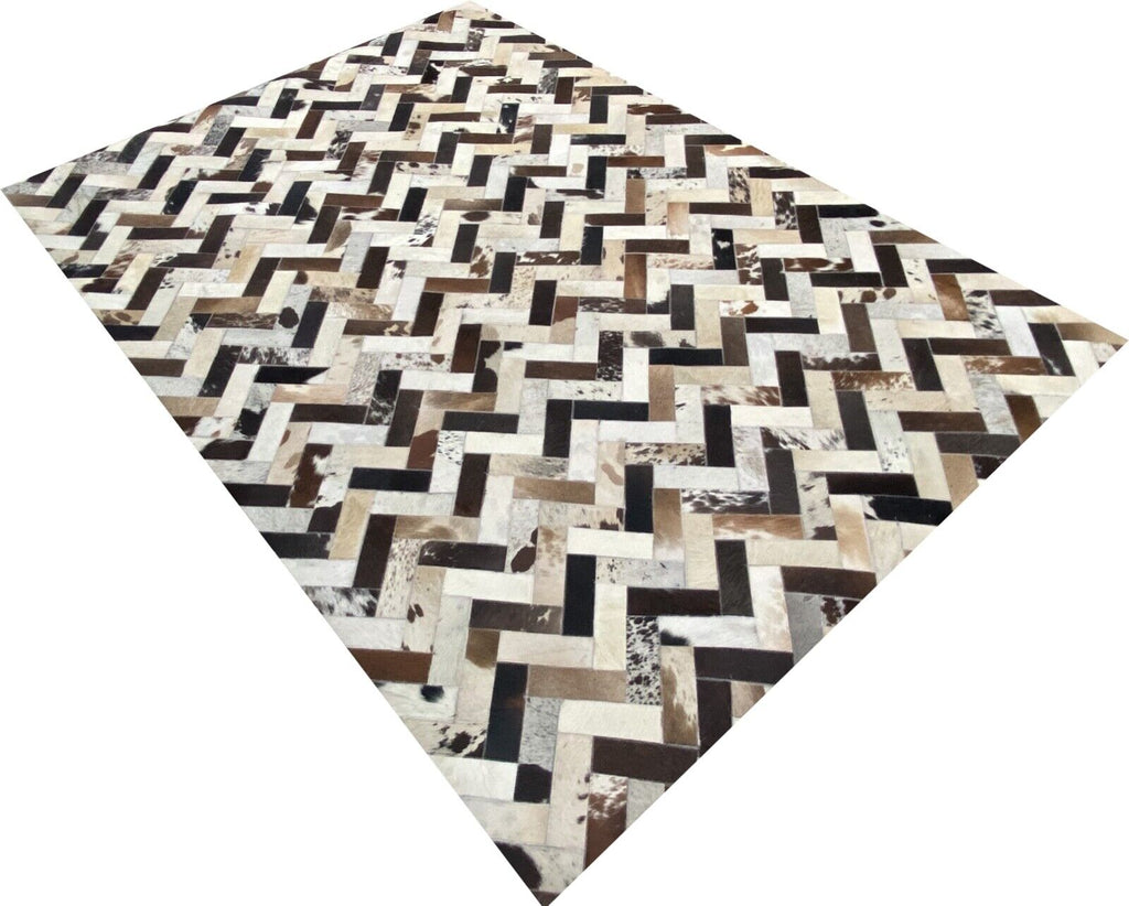 Leder Teppich 160x230 cm 100% Kuhfell ivory Braun Beige Silber Patchwork L7