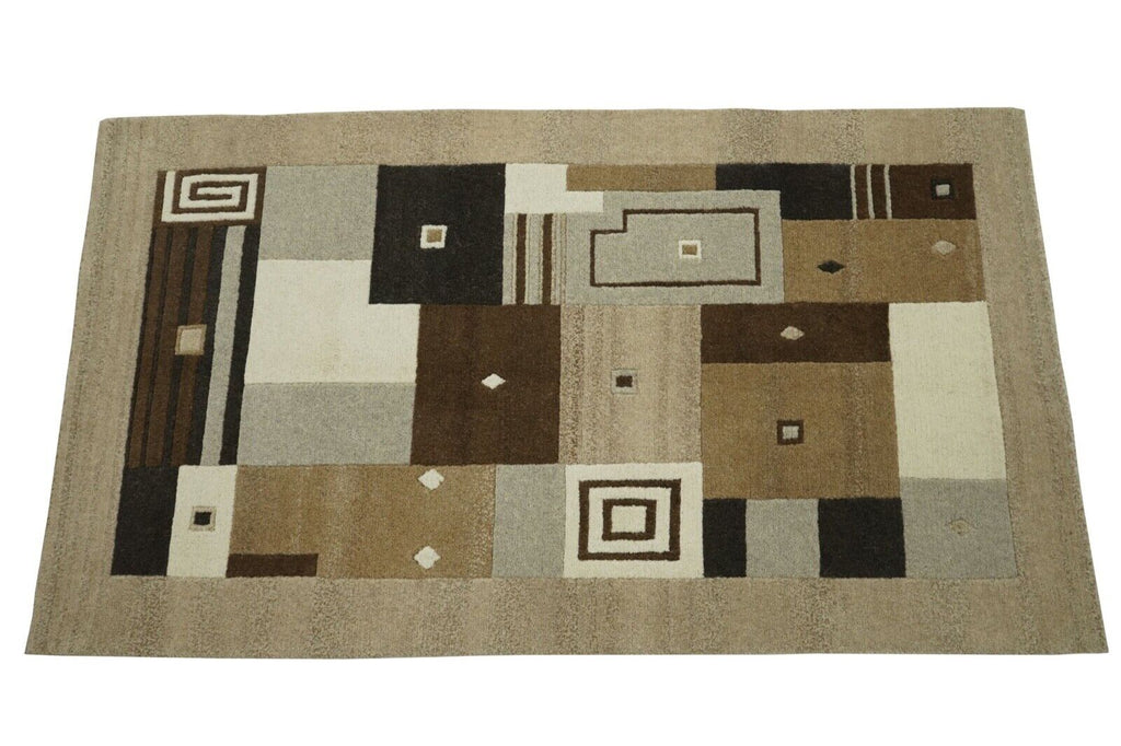 Nepal Teppich 100% Wolle Handgeknüpft Beige Braun 97X166 cm Orientteppich N776