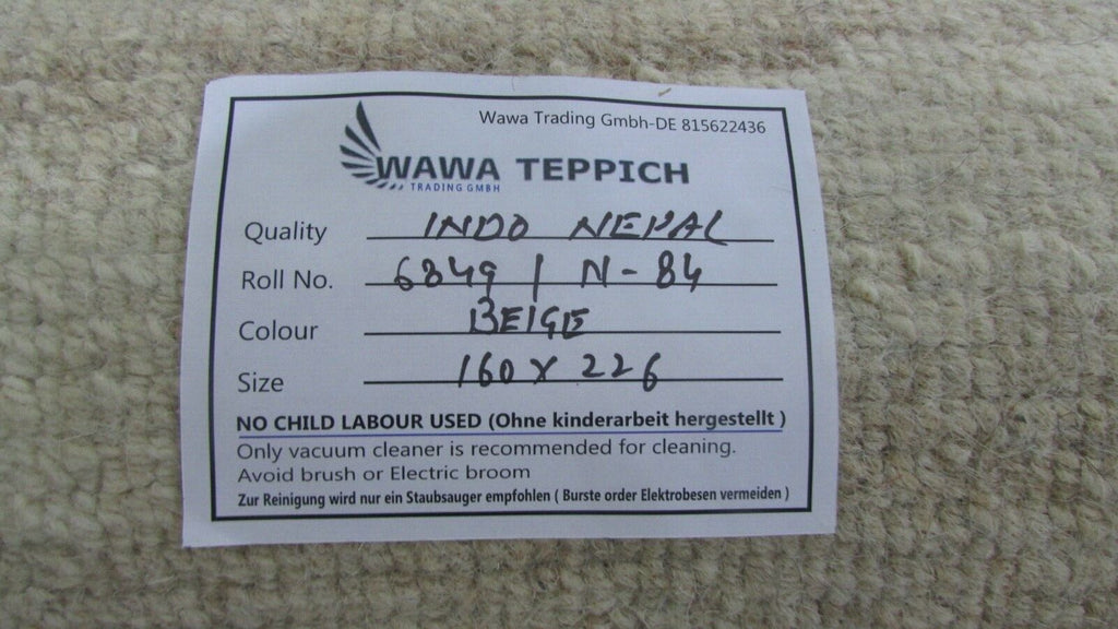 Nepal Teppich Handgeknüpft Beige Braun 100% Wolle Orientteppich 160x226 cm N-84