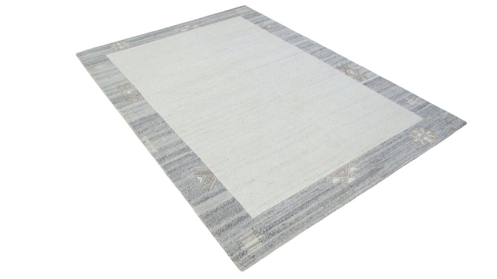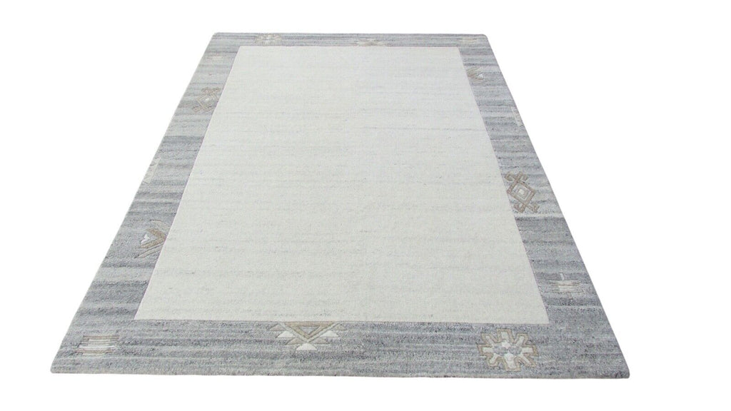 Nepal Teppich Handgeknüpft Beige Grau 100% Wolle Orientteppich 159x224 cm N-74
