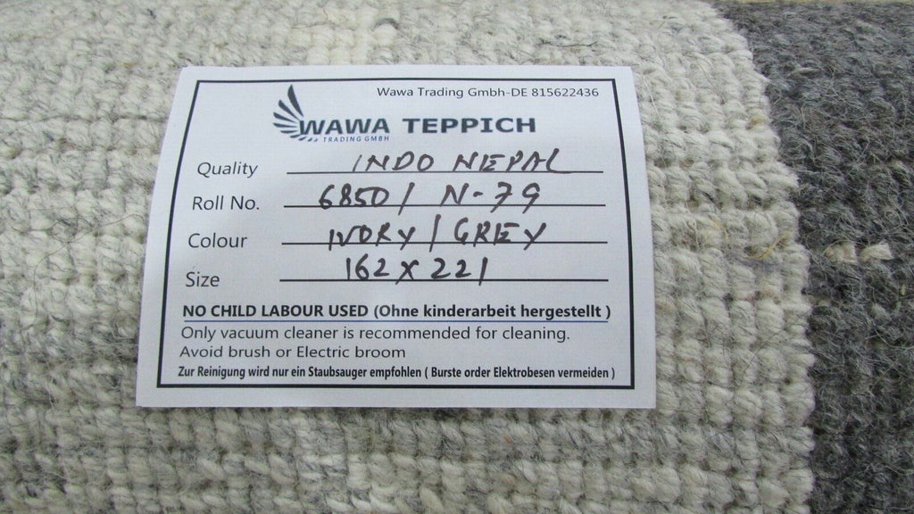Nepal Teppich Handgeknüpft Beige Grau 100% Wolle Orientteppich 162x221 cm N-79