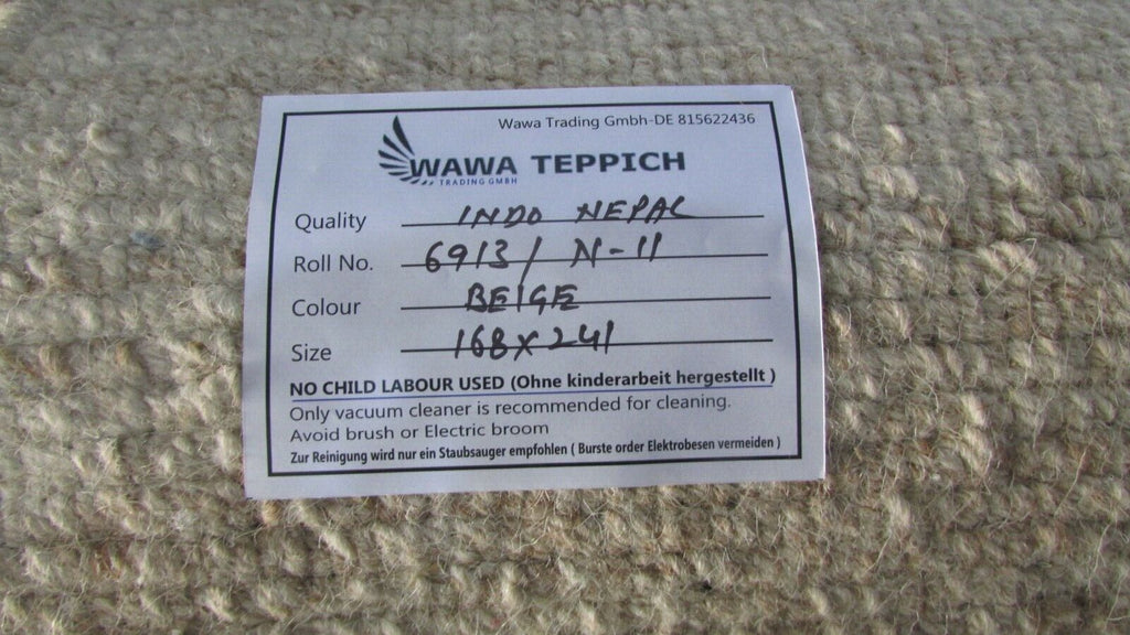 Nepal Teppich Handgeknüpft Beige Grau 100% Wolle Orientteppich 168x241 cm N-11