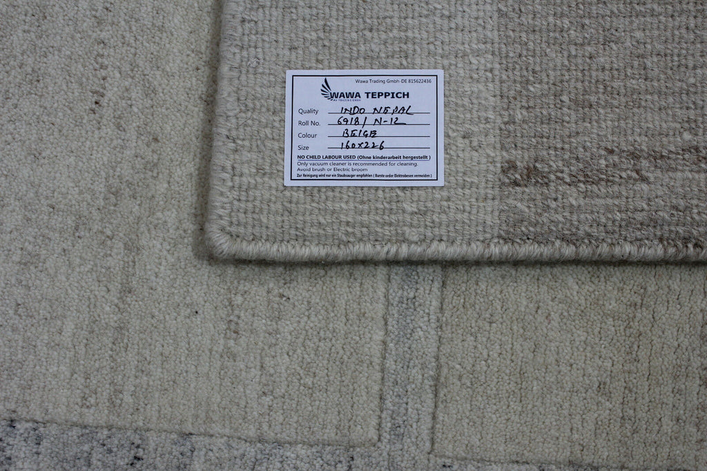 Nepal Teppich Handgeknüpft Braun Beige 100% Wolle Orientteppich 160x226 cm N12