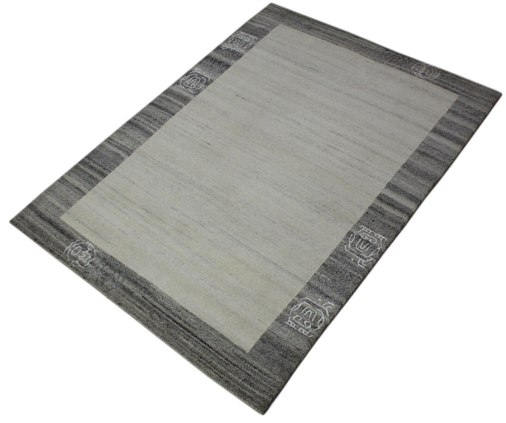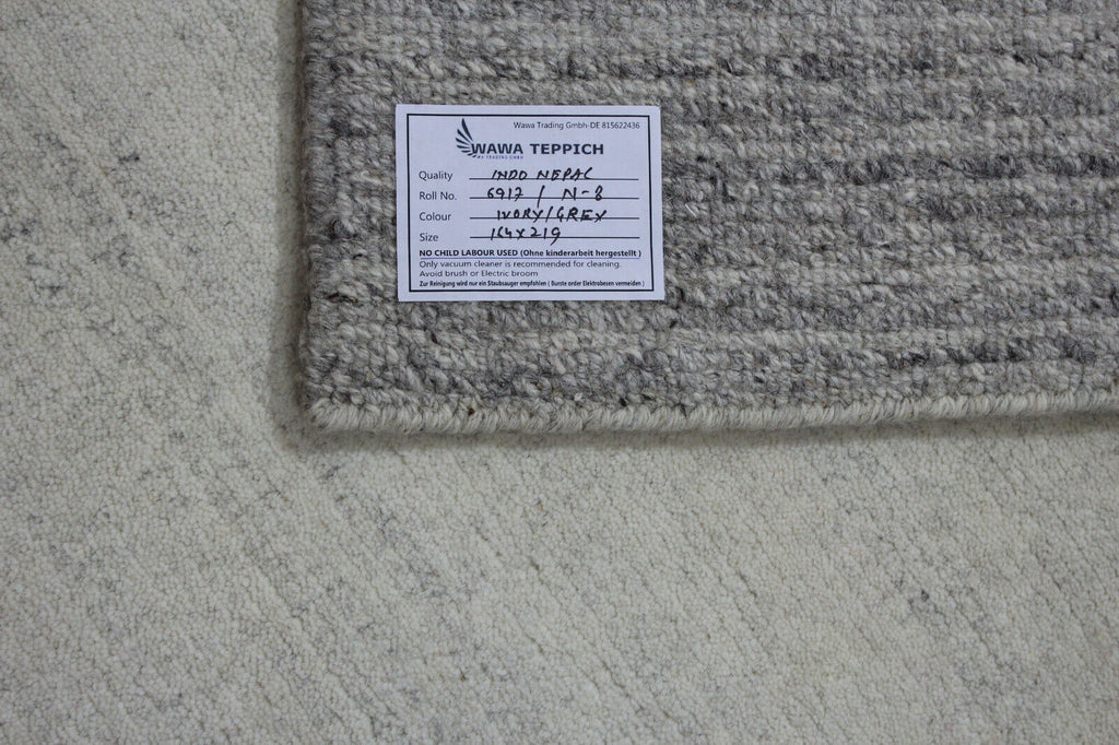 Nepal Teppich Handgeknüpft Grau Beige 100% Wolle Orientteppich 164x219 cm N8
