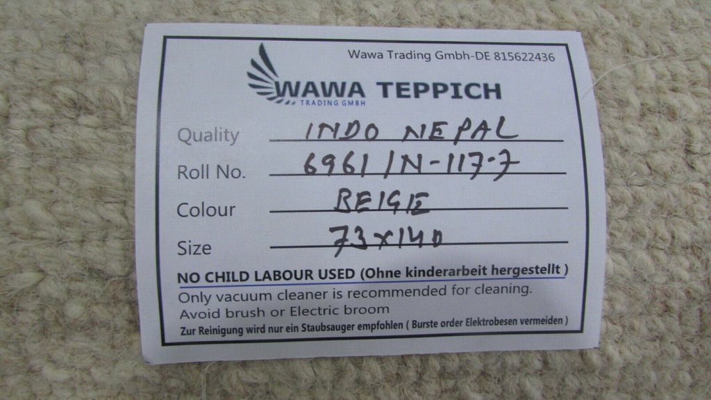Nepal Teppich Handgeknüpft Grau Beige 100% Wolle Orientteppich 70x140 cm N-117